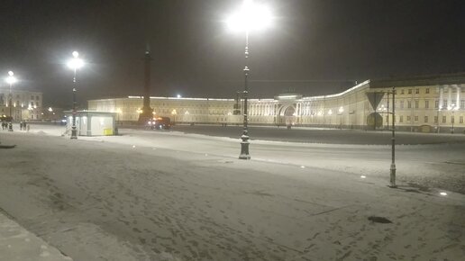Санкт-Петербург зимней ночью 2023. Дворцовая площадь, Невский проспект (2). Зима вернулась в Питер.
