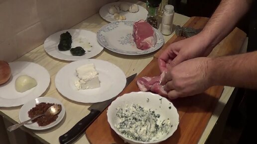 Как приготовить свиную корейку,фаршированную шпинатом и сыром фета.Вкусно быстро и просто.
