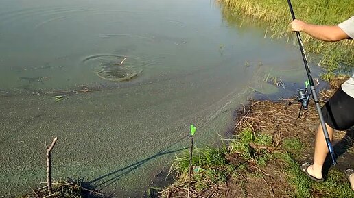 Поймал карпа на поплавочную удочку.