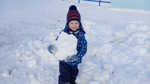 Макс скидывает огромные снежные глыбы с обрыва.
