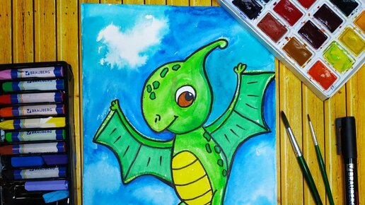 Как нарисовать динозавра для детей. Как нарисовать птеродактиля. Птеродактиль детский рисунок.