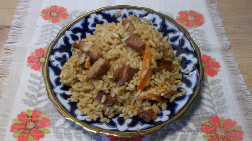 Домашний плов со свининой и пропаренным рисом.