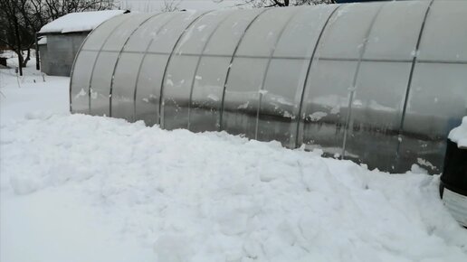 Очищаю теплицу от снега