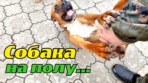 Собака немецкий боксер, валяется на полу. The dog is a German boxer, lying on the floor.