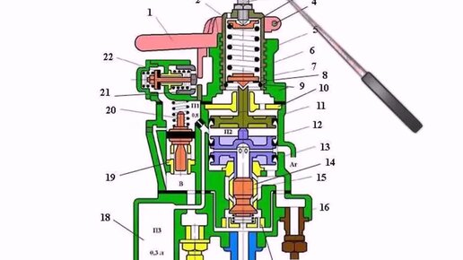 Кран вспомогательного тормоза №254 торможение и отпуск