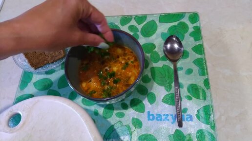 Суп на сковороде. Soup in a frying pan.