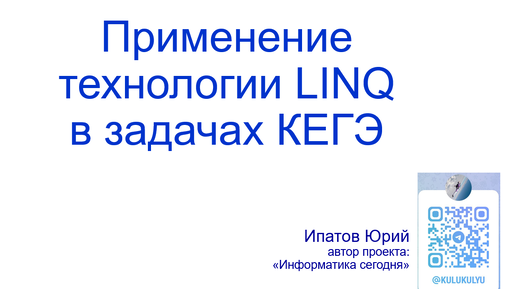 Применение технологии LINQ в задачах КЕГЭ. Семинар на площадке АНО ОО «Лицей «Инфотех»