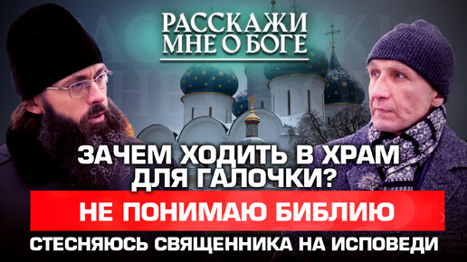 ЗАЧЕМ ХОДИТЬ В ХРАМ ДЛЯ ГАЛОЧКИ? НЕ ПОНИМАЮ БИБЛИЮ. СТЕСНЯЮСЬ СВЯЩЕННИКА НА ИСПОВЕДИ. РАССКАЖИ МНЕ О БОГЕ