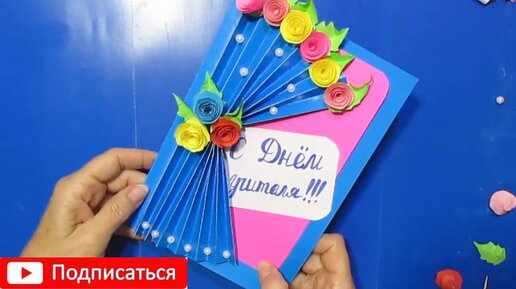 Поздравительная 3д открытка на День Учителя с цветами своими руками Сувенир на 8