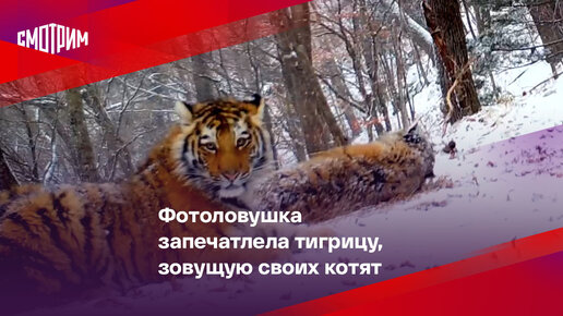 Фотоловушка запечатлела тигрицу, зовущую своих котят