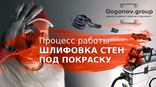 Процесс шлифовки стен перед покраской.