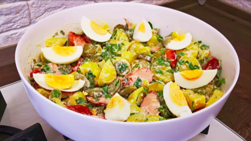 Когда гости уже на пороге и времени совсем мало, я всегда готовлю очень вкусный картофельный «Баварский» салат: сытный и простые ингредиенты