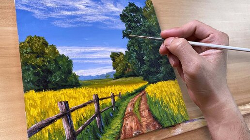 Рисуем дорогу в поле. Летний пейзаж. Мастер-класс по Живописи акрилом