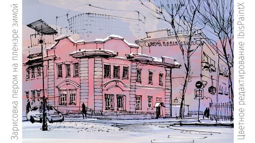 Зарисовка пером на пленэре зимой Цветное редактирование #IbisPaintX #UrbanSketch #Pen #blackink
