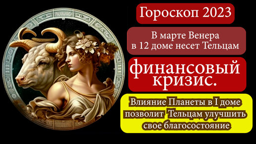 Гороскоп 2023. В марте Венера в 12 доме несет Тельцам финансовый кризис. Влияние Планеты в 1 доме позволит улучшить свое благосостояние