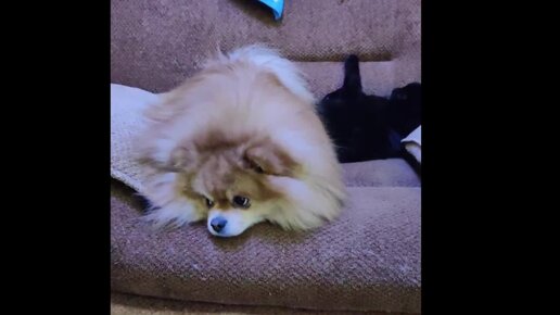 Верные друзья. Наши любимые питомцы - шпиц Симба и кот Васька.