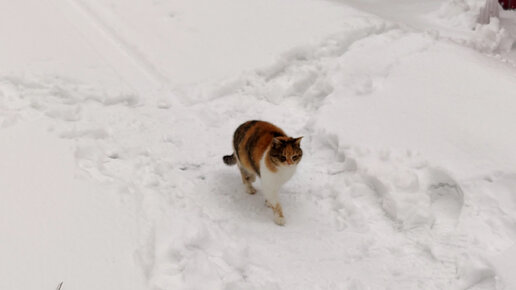 Уезжаем с дачи, и кормим бездомную кошку перед отъездом оставив лоток с едой. Мы уходим, а кошка нас провожает и не хочет чтобы мы уехали