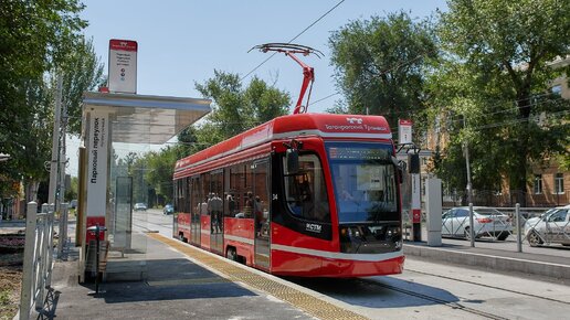 Обзор остановки трамвая в Таганроге.