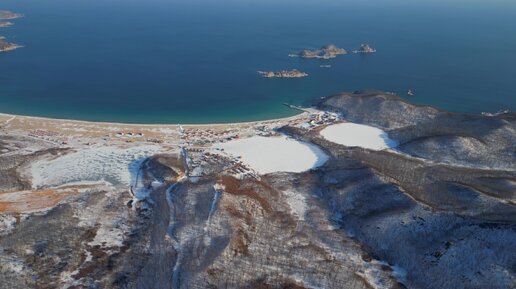 бухта Триозерье, остров Крейсер и соседние вершины (аэросъёмка)