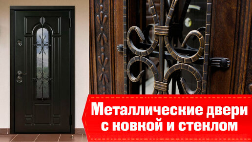 Дверь с ковкой и стеклом для дома или коттеджа