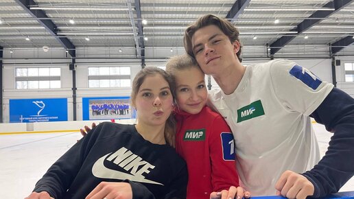 Пара Анжелики Крыловой Василиса Кагановская и Валерий Ангелопол тренируются, готовят показательный номер и выступают на соревнованиях.