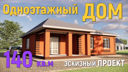 КРАСИВЫЙ КИРПИЧНЫЙ ОДНОЭТАЖНЫЙ ДОМ 140 кв. НА УЧАСТКЕ СЕМЬ СОТОК. 13,5х14,5 м. 3D ПРОЕКТ