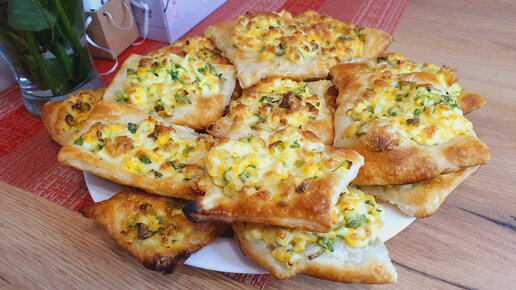 Слойки на скорую руку с яйцом и зелёным луком, вместо пирожков и без возни с тестом.