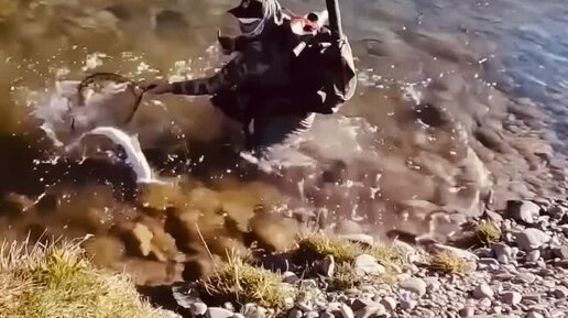 Рыбалка на спиннинг. Мужик вызвался помочь на подсачеке, но что-то пошло не так :)