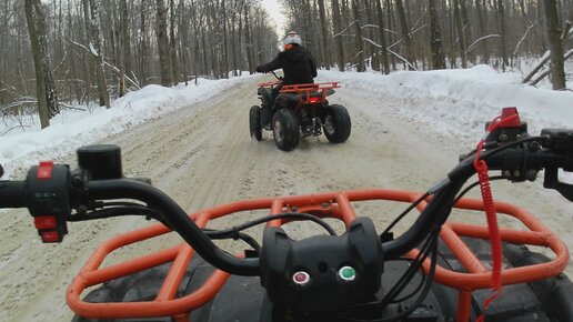 На двух квадриках с заносом по зимнему Арбековскому лесу.