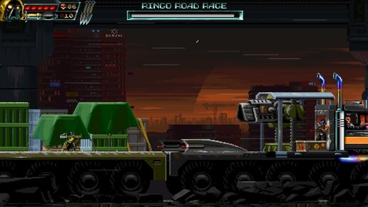 Huntdown - ретрошутер, сражение с боссом дальнобойщиком