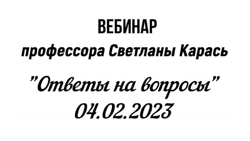 Вебинар профессора Светланы Карась. Ответы на вопросы - 04.02.2023
