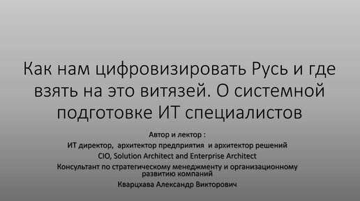 Как нам цифровизировать Русь и где взять на это витязей. О системной подготовке ИТ специалистов.