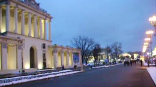 Центральная аллея ВДНХ в зимних сумерках