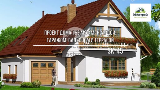 Проект дома 163 м2 с мансардой, гаражом, балконом и террасой - SK-45