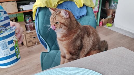 Завтрак с котом. А ваши коты приходят с вами есть?