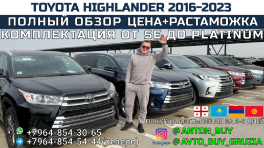 TOYOTA HIGHLANDER 2016-2023. ПОЛНЫЙ ОБЗОР. ЦЕНА+РАСТАМОЖКА. КОМПЛЕКТАЦИЯ ОТ SE ДО PLATINUM