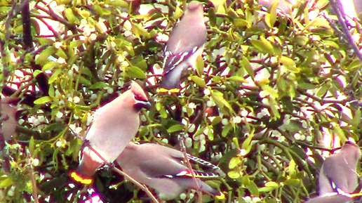 Свиристели на рябине едят ягоды омелы белой #свиристель #омела