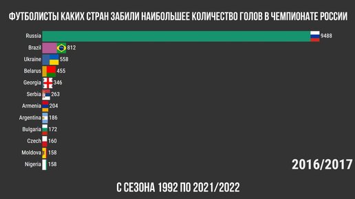 Футболисты из каких стран забили больше всего голов в Чемпионате России (с сезона 1992 по 2021/2022)