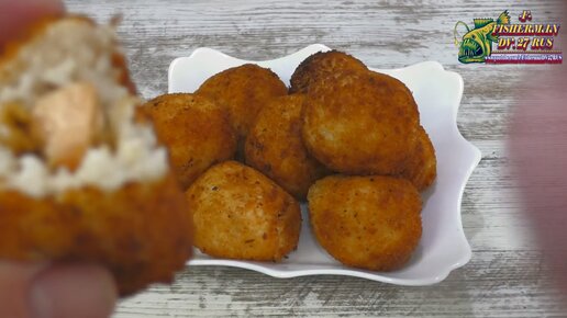 Хрустящие рисовые шарики с жареной горбушей, Рецепты из рыбы от Fisherman DV 27 Rus