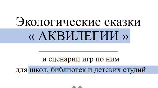 Экологические сказки АКВИЛЕГИИ и игры по ним