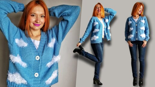 Модный кардиган с облаками - спицами на пуговицах из PINTEREST и SHEIN | описание