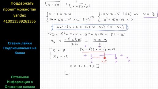 Математика Найдите область определения выражения √(5-2х) +1/√(14+5х-х^2)