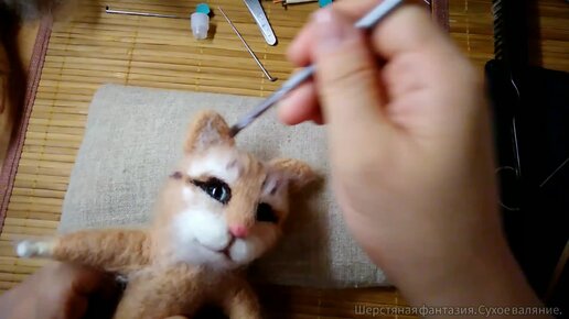 "Макияж" для кота. Стрижка и тонировка мордочки. Кот сухое валяние