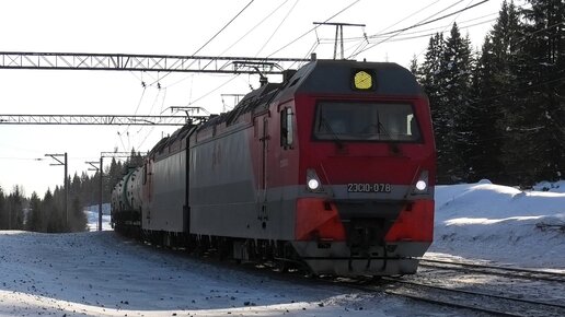 2ЭС10-078 "Гранит" с грузовым поездом следует через о.п. Глухарь