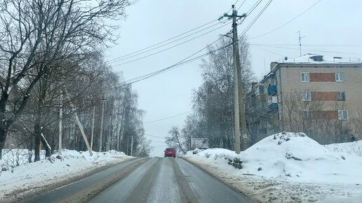 Город Струнино от самого центра и до заправки в феврале месяце. Александровский район Владимирской области. Взгляд из машины.