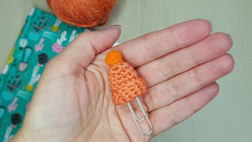 Связала малюсенькую шапочку крючком. Получилась симпатичная закладка в блокнот