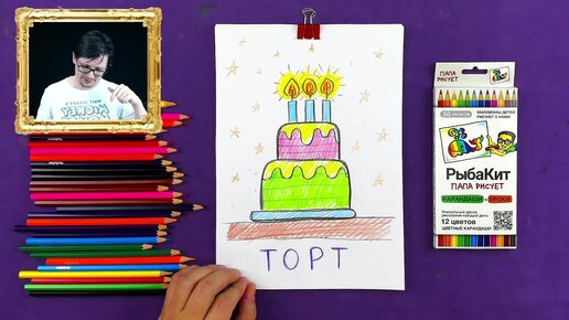 Рисуем торт цветными карандашами - уроки рисования для детей