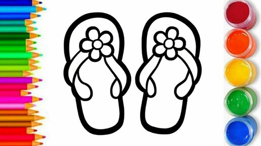 Рисование раскраски Шлепанцы для детей | Попробуйте рисовать вместе со мной.