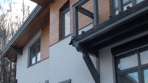 Дом сложной конфигурации с температурно-усадочными швами, с планкеном. Подоконные отливы, стыковка планкена с Мокрым Фасадом СФТК