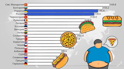 Коэффициент смертности от ожирения в странах НАТО,России и Украине. Статистика 1990-2019